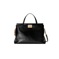 Pepper's Luxury Closet guarantees this is an authentic Black Medium Double G Leather interlocking Tote Shoulder Bag. Featuring ample space for your essentials and a stylish design, it is perfect for daily use and shopping trips. This item has been carefully inspected by our experts to verify authenticity and condition.