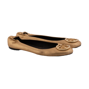 Pepper's Luxury Closet guarantees this is an authentic Gold Logo Ballerina Flat Shoes. Featuring premium materials and a timeless design, it is perfect for elevating your style for any occasion. This item has been carefully inspected by our experts to verify authenticity and condition.