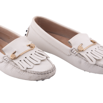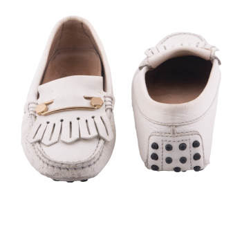 Pepper's Luxury Closet guarantees this is an authentic TOD'S Off-White Leather Loafers with Fringe. Featuring premium materials and a timeless design, it is perfect for elevating your style for any occasion. This item has been carefully inspected by our experts to verify authenticity and condition.