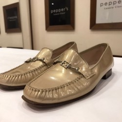 Pepper's Luxury Closet guarantees this is an authentic BEIGE GOLD LOAFERS PATENT LEATHER FLAT SHOES BY ESCADA IN EGYPT - PEPPER'S LUXURY. Featuring premium materials and a timeless design, it is perfect for elevating your style for any occasion. This item has been carefully inspected by our experts to verify authenticity and condition.