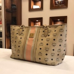 Pepper's Luxury Closet guarantees this is an authentic Beige MCM Visetos Striped Tote Shoulder bag. Featuring ample space for your essentials and a stylish design, it is perfect for daily use and shopping trips. This item has been carefully inspected by our experts to verify authenticity and condition.