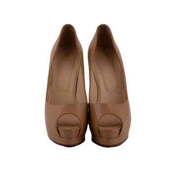 Pepper's Luxury Closet guarantees this is an authentic Beige Patent Leather Vernis Peep-toe. Featuring premium materials and a timeless design, it is perfect for elevating your style for any occasion. This item has been carefully inspected by our experts to verify authenticity and condition.