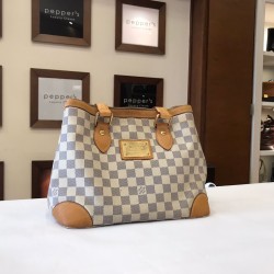 Pepper's Luxury Closet guarantees this is an authentic Beige x white Damier azure Medium Hampstead Tote Shoulder Bag MM. Featuring ample space for your essentials and a stylish design, it is perfect for daily use and shopping trips. This item has been carefully inspected by our experts to verify authenticity and condition.