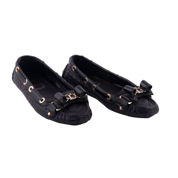 Pepper's Luxury Closet guarantees this is an authentic Black Ballerina Leather Flats With Logo Detail. Featuring premium materials and a timeless design, it is perfect for elevating your style for any occasion. This item has been carefully inspected by our experts to verify authenticity and condition.