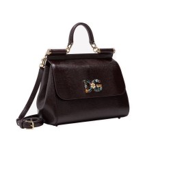 Authentic BLACK Black dolce & Gabbana Iguana Embossed Leather Crystal DG Logo Medium Miss Sicily Bag by DOLCE & GABBANA in Egypt - Pepper's Luxury