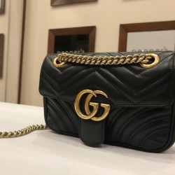 Pepper's Luxury Closet guarantees this is an authentic Black GG Marmont Leather Flap Shoulder Crossbody Bag. Featuring premium materials and a timeless design, it is perfect for elevating your style for any occasion. This item has been carefully inspected by our experts to verify authenticity and condition.
