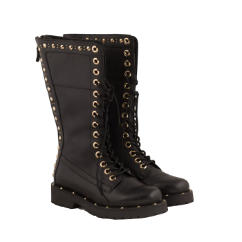Authentic BLACK Black Gold Studs Flat Boots by TWIN SET in Egypt - Pepper's Luxury