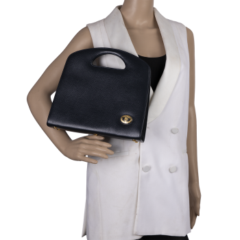 Pepper's Luxury Closet guarantees this is an authentic Black Hard Leather Top Handle Bag. Featuring premium materials and a timeless design, it is perfect for elevating your style for any occasion. This item has been carefully inspected by our experts to verify authenticity and condition.