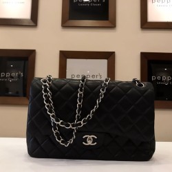 Pepper's Luxury Closet guarantees this is an authentic Black Jumbo Large Lambskin Classic Double flap Shoulder Cross Bag. Featuring premium materials and a timeless design, it is perfect for elevating your style for any occasion. This item has been carefully inspected by our experts to verify authenticity and condition.