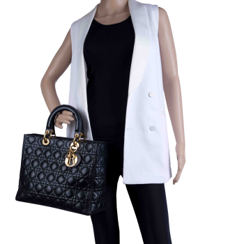 Authentic BLACK Black Lambskin Lady Dior Large Shoulder Bag by DIOR in Egypt - Pepper's Luxury