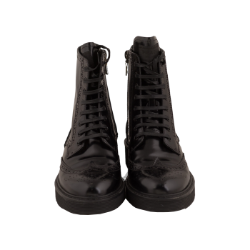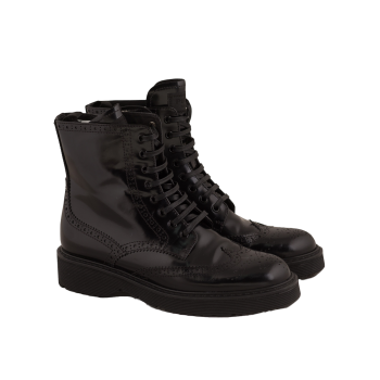 Authentic BLACK Black Leather Combat Ankle Boots Booties by PRADA in Egypt - Pepper's Luxury