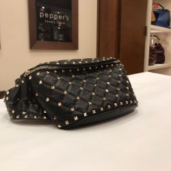 Pepper's Luxury Closet guarantees this is an authentic Black leather Rockstud spike bumbag waist bag. Featuring premium materials and a timeless design, it is perfect for elevating your style for any occasion. This item has been carefully inspected by our experts to verify authenticity and condition.
