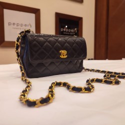 Pepper's Luxury Closet guarantees this is an authentic Black Mini Classic Flap Lambskin cross body shoulder Bag GHW. Featuring premium materials and a timeless design, it is perfect for elevating your style for any occasion. This item has been carefully inspected by our experts to verify authenticity and condition.