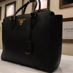 Authentic BLACK Black Saffiano Leathet Tote Shoulder Bag by PRADA in Egypt - Pepper's Luxury