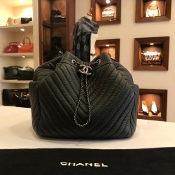 Authentic BLACK Black V-Stitched Drawstring 2way Shoulder Crossbody Bag by CHANEL in Egypt - Pepper's Luxury