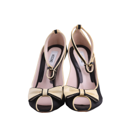 Authentic BLACK Black X White Patent Leather Peep-toe High Heel Shoes by MOSCHINO in Egypt - Pepper's Luxury
