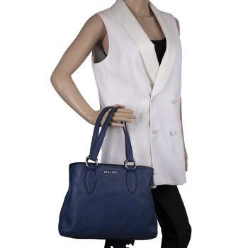 Pepper's Luxury Closet guarantees this is an authentic Blue Daino Vitello Pebbled Leather shoulder Bag. Featuring premium materials and a timeless design, it is perfect for elevating your style for any occasion. This item has been carefully inspected by our experts to verify authenticity and condition.