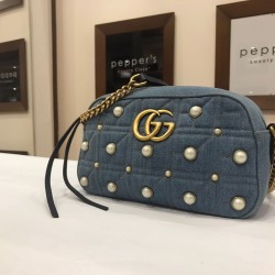 Authentic BLUE Blue Denim Pearl Studded GG Marmont Crossbody shoulder bag by GUCCI in Egypt - Pepper's Luxury