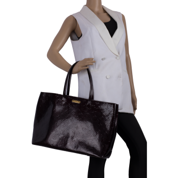 Pepper's Luxury Closet guarantees this is an authentic Wine Red Vernis Leather Wilshire GM Tote Shoulder Bag. Featuring ample space for your essentials and a stylish design, it is perfect for daily use and shopping trips. This item has been carefully inspected by our experts to verify authenticity and condition.
