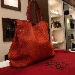 Authentic RED Carolina Herrera Monogram Embossed Leather Matryoshka Tote by CAROLINA HERRERA in Egypt - Pepper's Luxury