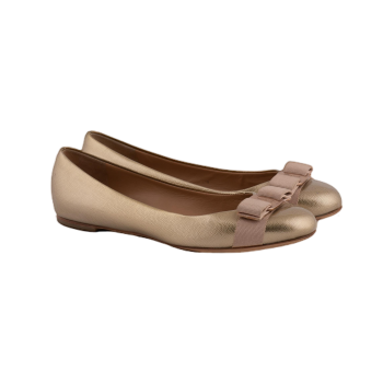 Pepper's Luxury Closet guarantees this is an authentic Gold ballerina Flats with bow detail. Featuring premium materials and a timeless design, it is perfect for elevating your style for any occasion. This item has been carefully inspected by our experts to verify authenticity and condition.