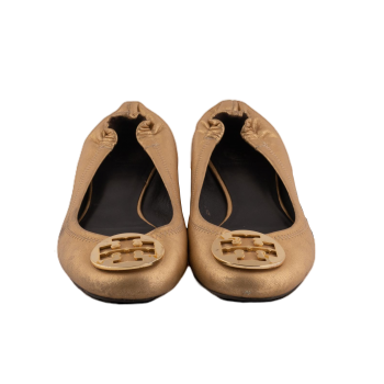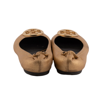Pepper's Luxury Closet guarantees this is an authentic Gold Logo Ballerina Flat Shoes. Featuring premium materials and a timeless design, it is perfect for elevating your style for any occasion. This item has been carefully inspected by our experts to verify authenticity and condition.