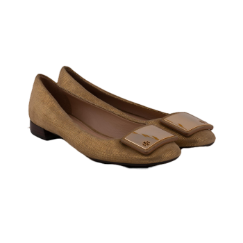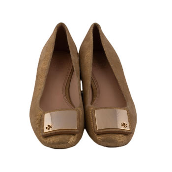 Pepper's Luxury Closet guarantees this is an authentic Gold Metal Plaque Logo Ballerina Flats Shoes. Featuring premium materials and a timeless design, it is perfect for elevating your style for any occasion. This item has been carefully inspected by our experts to verify authenticity and condition.