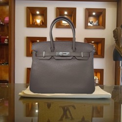 Pepper's Luxury Closet guarantees this is an authentic Gray Birkin ToGo Leather 35 SHW Satchel Handbag. Featuring premium materials and a timeless design, it is perfect for elevating your style for any occasion. This item has been carefully inspected by our experts to verify authenticity and condition.