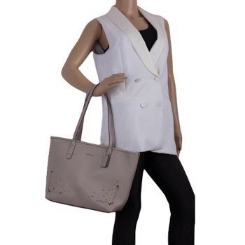 Pepper's Luxury Closet guarantees this is an authentic Taupe Leather Shopping Tote Shoulder bag (New). Featuring ample space for your essentials and a stylish design, it is perfect for daily use and shopping trips. This item has been carefully inspected by our experts to verify authenticity and condition.