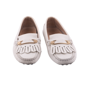 Pepper's Luxury Closet guarantees this is an authentic TOD'S Off-White Leather Loafers with Fringe. Featuring premium materials and a timeless design, it is perfect for elevating your style for any occasion. This item has been carefully inspected by our experts to verify authenticity and condition.